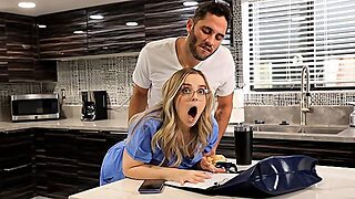 Sultry college babe gets down and dirty in the kitchen, wrapping her lips around a massive cock before taking it hard on the floor. Busty perfection at its finest!