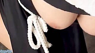 Sexy nun with nice boobs gets fucked with cum between her tits